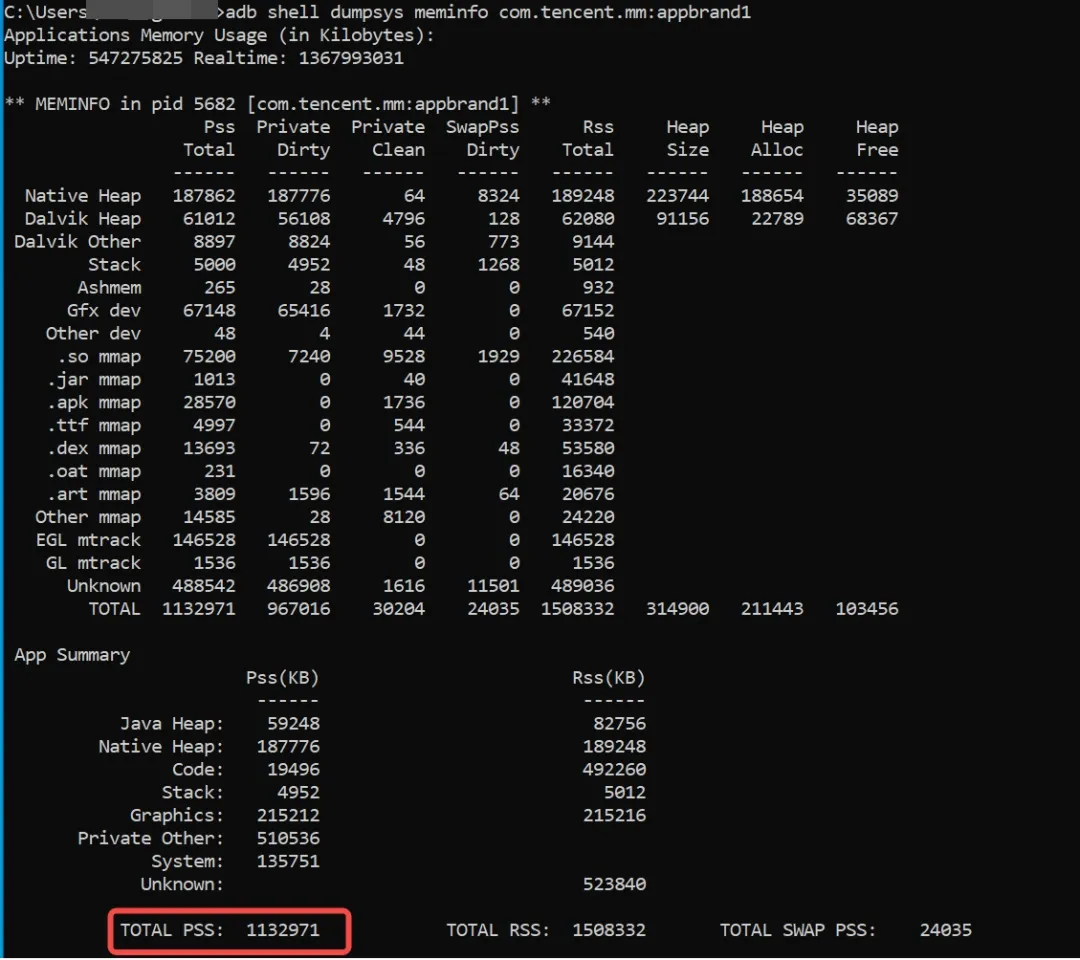 adb shell dumpsys meminfo com.tencent.mm:appbrand1