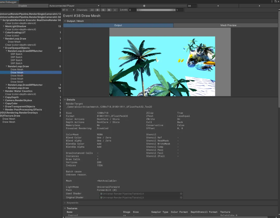 유니티 엔진은 위챗 미니 게임 플랫폼에서 프레임 디버거 기능을 지원합니다. 게임 렌더링 오류 또는 GPU 인스턴싱이 예상대로 작동하지 않는 경우 프레임 디버거를 사용하여 원인을 확인할 수 있습니다.