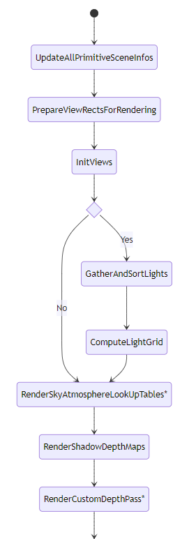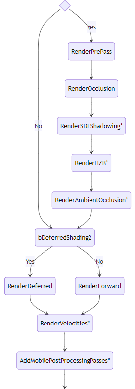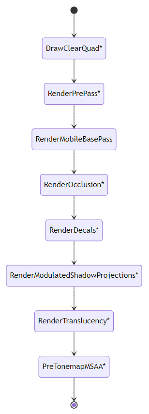 FMobileSceneRenderer의 주요 프로세스 및 단계입니다.