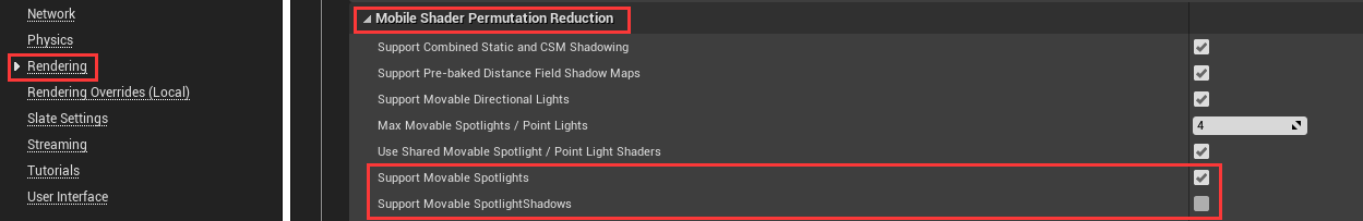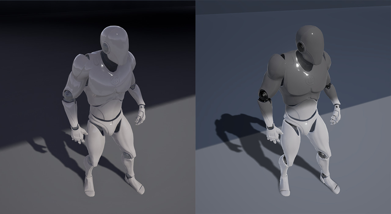 왼쪽: 동적 그림자, 오른쪽: 변조된 그림자. 모바일의 그림자는 자체 그림자, 그림자 품질 수준(r.shadowquality), 깊이 오프셋과 같은 매개변수 설정도 지원합니다. 또한 모바일에서는 기본적으로 GGX의 하이라이트 리플렉션을 사용하므로 기존 하이라이트 셰이딩 모델로 전환하려면 다음 구성에서 변경할 수 있습니다: