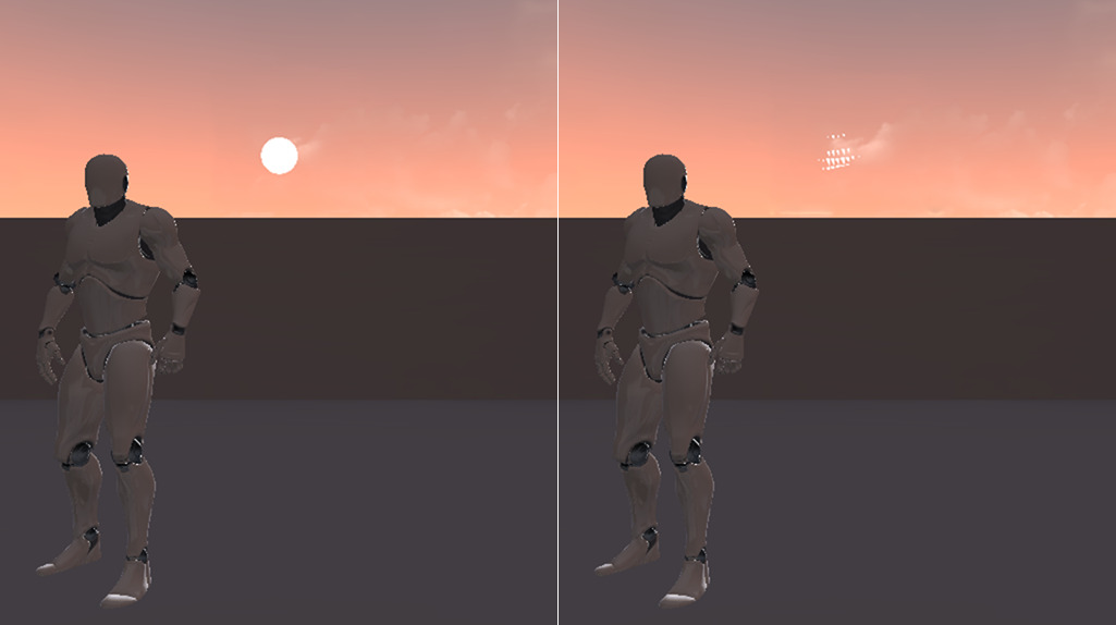 태양(평행광)은 디스턴스 필드 섀도 + 해상도 높은 스페큘러 하이라이트를 지원합니다.