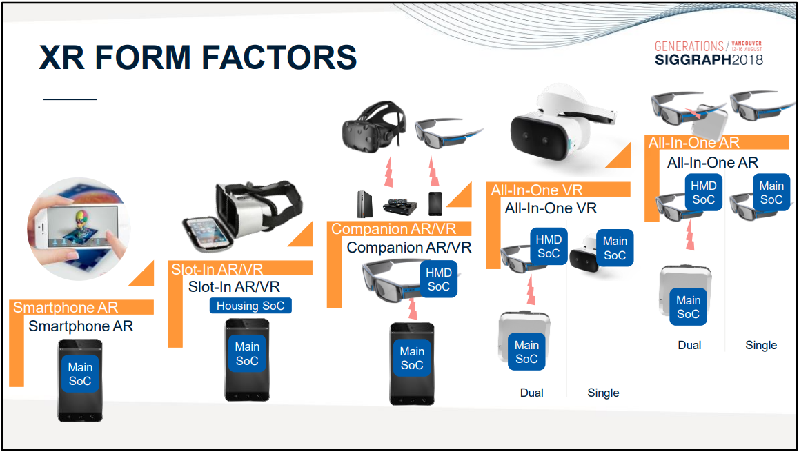 모바일 디바이스를 측정하는 세 가지 기본 매개변수는 성능, 면적, 전력이며, 컴퓨팅 밀도는 성능 및 면적과 관련이 있고 에너지 비율은 성능 및 용량 소비와 관련이 있으므로 클수록 좋습니다. 모바일 디바이스의 부상과 함께 모바일 디바이스의 중요한 발전 분야인 XR 디바이스의 부상도 함께 이루어지고 있습니다. 크기, 기능 및 애플리케이션 시나리오가 다양한 다양한 XR 디바이스가 존재합니다: