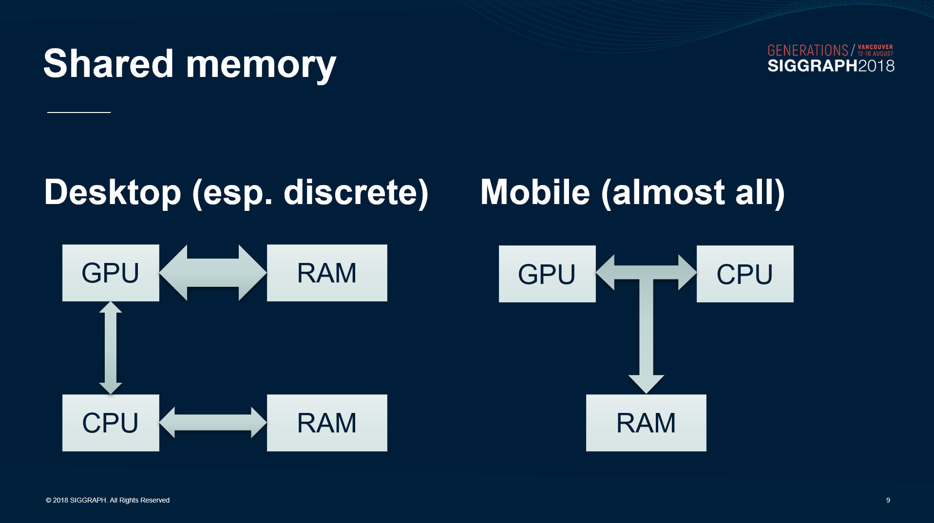 특수 하드웨어 아키텍처. 커플링 아키텍처로 알려진 CPU와 GPU가 메모리 저장 장치를 공유하는 것과 GPU용 TB(TB) 아키텍처 등이 있습니다. 저전력으로 최대한 많은 연산을 수행하는 것을 목표로 CPU와 GPU가 메모리 저장 장치를 공유하는 커플링 아키텍처, GPU용 TB(D)R 아키텍처 등이 있습니다.