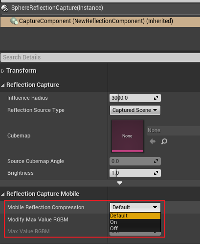 기본적으로 하이엔드 모바일 디바이스만 [Project]Scalability.ini에서 r.Mobile.PixelProjectedReflectionQuality가 켜져 있습니다.