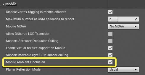 또한 GTAO는 모바일 HDR 옵션에 의존하므로 해당 타겟 디바이스에서 활성화하려면 [Platform]Scalability.ini의 구성에 r.Mobile.AmbientOcclusionQuality 필드를 추가해야 하며 이 값은 0보다 커야 합니다. 그렇지 않으면 GTAO가 비활성화됩니다. . 최대 컴퓨트 셰이더 스레드 수가 1024개 미만인 말리 디바이스에서는 GTAO의 성능 문제가 발생한다는 점에 유의할 필요가 있습니다.
