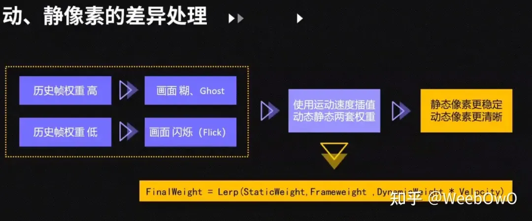 움직이는 픽셀이 혼합되어 객체가 빠르게 움직일수록 현재 프레임의 가중치가 높아집니다.