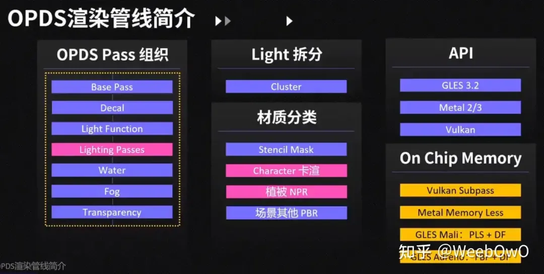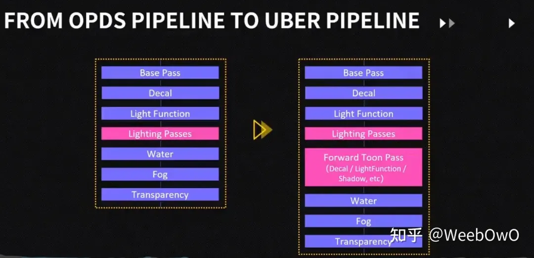 전체 파이프라인 프로필은 다음과 같으며, 온칩 메모리 기반 최적화의 보다 고전적인 구현인 나루미 역시 PBR과 NPR의 조합으로, 역할과 식생은 NPR로, 나머지는 PBR로 처리합니다.