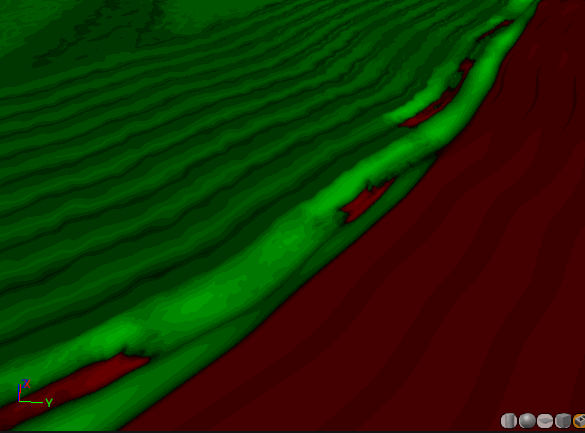 지형의 기울기는 파도의 방향을 결정하는 데 사용되며, 이 기울기 값의 색상 전환을 사용하여 X축 방향의 UV를 계산할 수 있습니다.