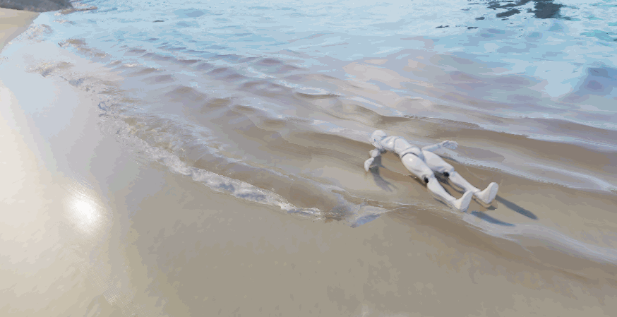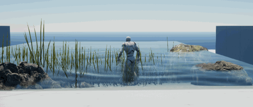 반면 캐릭터 상호작용은 고품질의 안정적인 동적 상호작용 방식인 얕은 물 방정식 방식을 사용합니다.