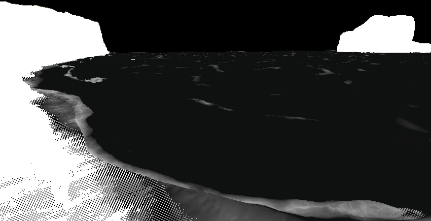 파도 끝에 공기가 섞이고 파도가 끝에서 부서질 때 거품이 생기는 현상을 시뮬레이션하는 파도 디더(Dither)도 마찬가지입니다.