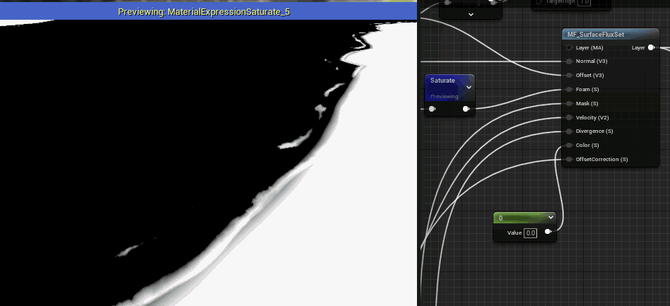 로컬 공간 애니메이션은 sdf 맵에 주입되고 월드 포지션 오프셋으로 변환됩니다. 여기서는 부드러운 색상 전환을 보여주기 위해 MF_SurfaceFlux_Coastline의 오프셋에 리맵을 추가하여 미리보기로 사용했습니다.