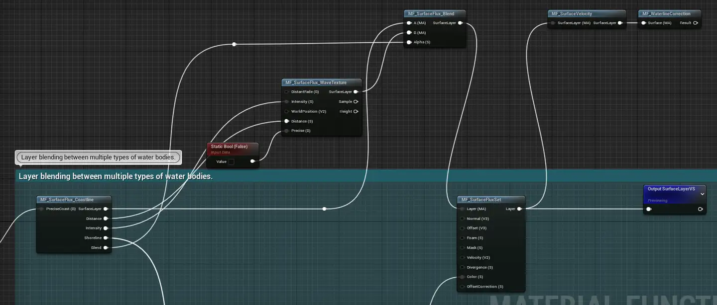 - MF_SurfaceFlux_Blend는 MF_SurfaceFlux_Coastline 및 MF_SurfaceFlux_WaveTexture로 Lerp를 수행합니다.