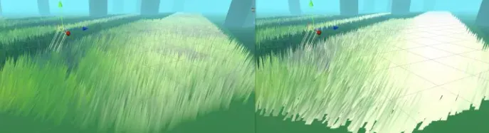 왼쪽은 잔디 끝만 강조하는 효과이고, 오른쪽은 모든 정점을 강조하는 효과입니다.