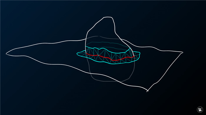 한때 이 기법을 사용하려면 지형의 일부와 전체 바위를 후디니로 익스포트해야 했지만, 이제 언리얼 엔진에서는 후디니 엔진을 사용하여 이 작업을 직접 수행할 수도 있습니다.그런 다음 두 지오메트리의 교차선을 찾아 바위와 지형의 서브노멀을 따라 이동하면 지오메트리의 스커트가 생성됩니다. 가장자리 주변에 알파 채널이 있어 지형 머티리얼이나 특수한 머티리얼에 적용하여 비슷한 효과를 낼 수 있으므로 모든 것이 함께 블렌딩될 수 있습니다.
