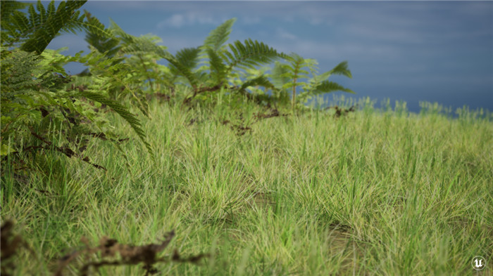 단순한 흔들기만 하기 때문에 전체 시뮬레이션보다 GPU 계산 속도가 빠르며, 스태틱 메시이기 때문에 수동으로 애니메이션을 적용하는 스킨 메시보다 빠릅니다; 스태틱 메시의 계층적 인스턴스화를 사용하기 때문에 하나의 큰 스태틱 메시를 사용했을 때보다 GPU에서 계산 효율이 더 높습니다.