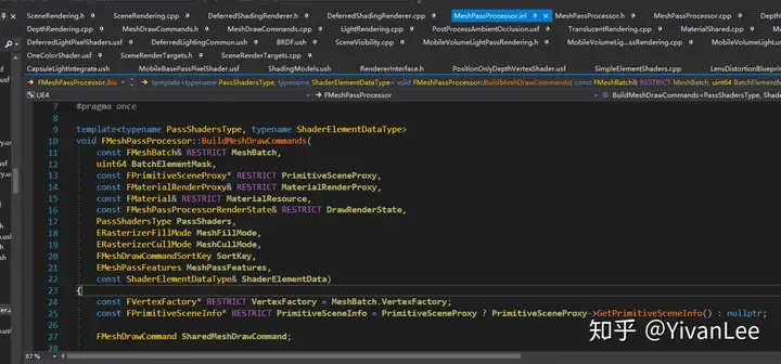 아마도 렌더링 스레드에 해당하는 프리미티브의 모든 게임 스레드는 프리미티브 씬 프록시인 경우 GetDynamicMeshElements() 함수에 의해 메시 배치로 변환된 다음 메시 패스 프로세서의 AddMeshBatch() 메서드를 호출할 것임을 의미할 것입니다.이 메서드도 커스텀으로 메시패스프로세서에서 상속된 다음 FMeshPass프로세서 클래스로 변환됩니다.그런 다음 최종적으로 AddMeshBatch () 내부에 Process () 함수(사실 자체적으로 모두 가지고 있지는 않지만 AddMeshBatch에는 있어야 함)가 있고, 이 함수는 BuildMeshDrawCommands ()를 호출하며, 이 함수는 최종적으로 SubmitMeshDarwCommands (), 즉 렌더링 명령 세트를 최종적으로 제출합니다.
