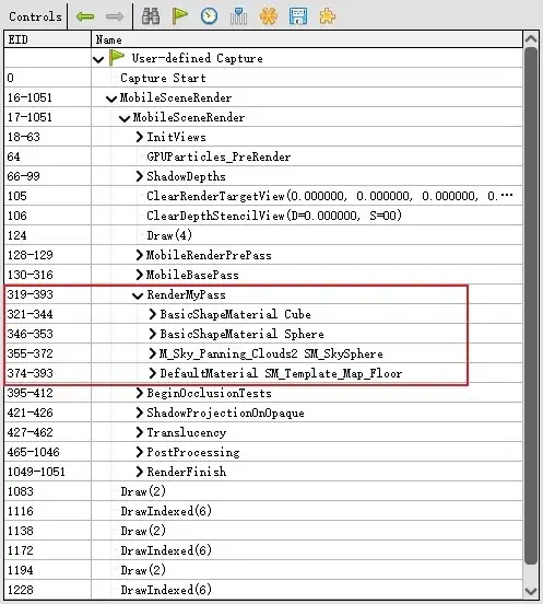 RenderDoc으로 프레임을 자르면 커스텀 패스가 이미 렌더링 파이프라인에 있는 것을 확인할 수 있습니다: