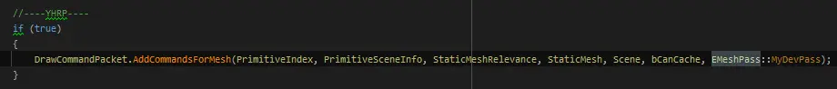 셰이더와 MeshDrawCommand 생성을 마쳤으니 이제 MeshDrawCommand를 추가해야 합니다. 엔진이 MeshDrawCommand를 추가하는 위치는 정적과 동적 두 곳입니다.