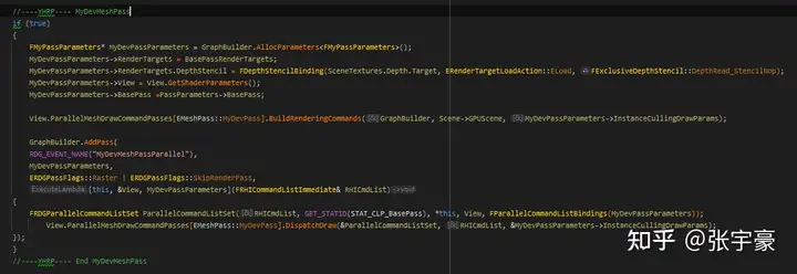 BasePassRendering.cpp 에서 메시 패스를 원하는 곳에 삽입하면 되는데, UE4 가 셰이더 빌드 함수에서 UniformBuffer 를 바인딩하던 이전과 달리 UE5 의 SetInstancedViewUniformBuffer() 는 더 이상 사용되지 않으므로 다음을 사용하여 전달해야 합니다.GetShaderParameters() 를 사용하여 전달해야 하는데, 그게 좋은지 아닌지는 잘 모르겠습니다.
