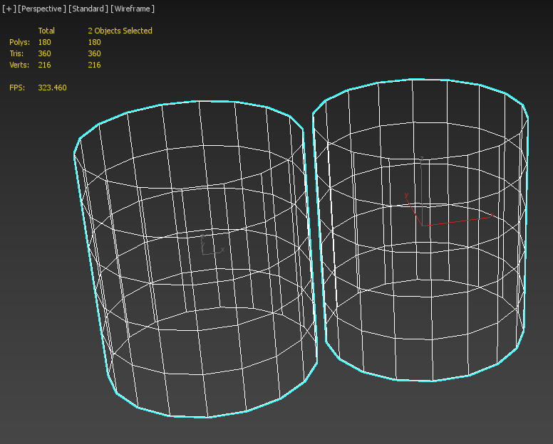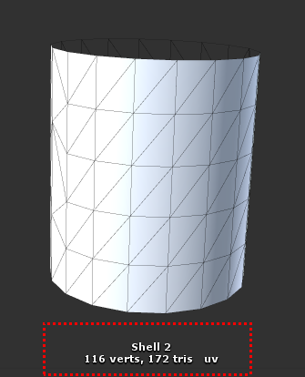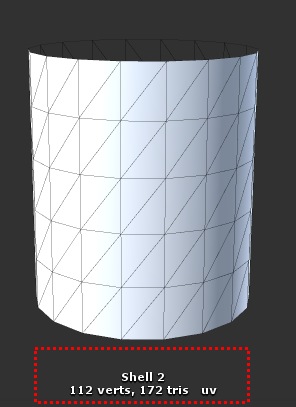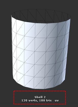동일한 구조의 실린더 두 개를 제작하여 하나는 UV 셸을 단일 형태로, 다른 하나는 UV 셸을 두 개로 제작하고 VBO 증가를 비교합니다.