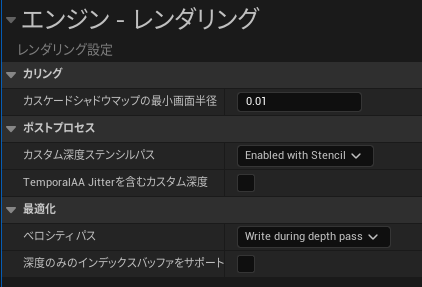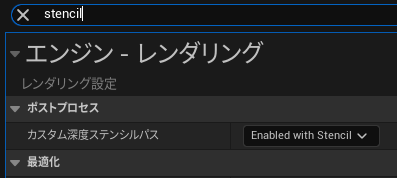프로젝트 설정에서 커스텀 뎁스 스텐실 패스를 'Enable with Stencil'로 변경합니다.。