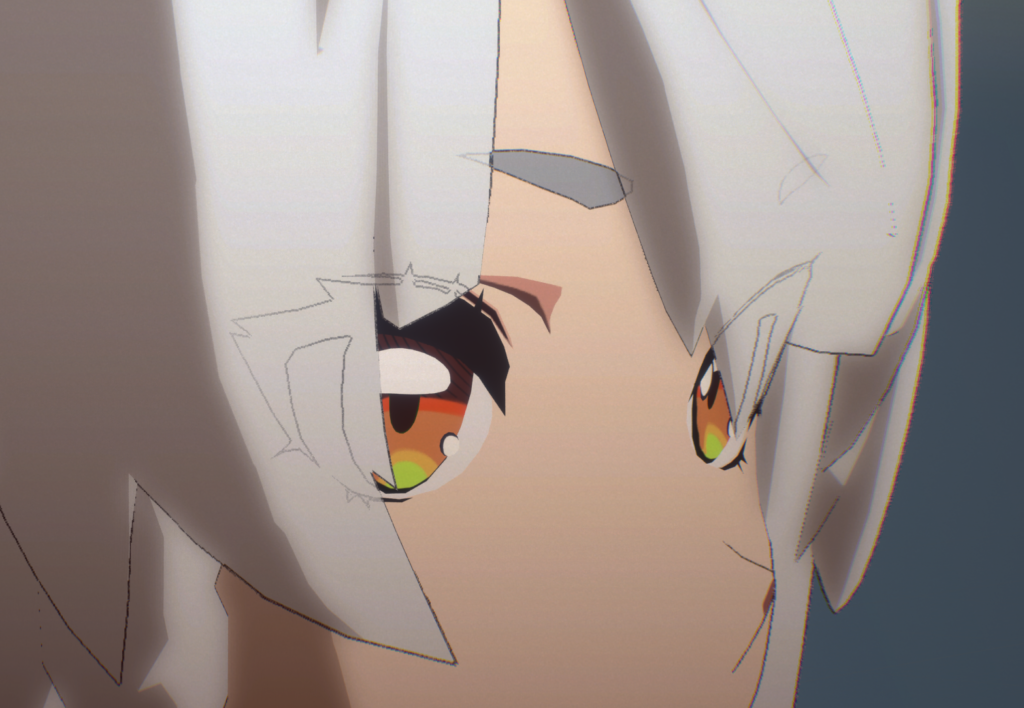 하지만 깊이 정보를 가진 '기타'나'눈썹-속눈썹'에 별도의 정점 컬러 등으로 마스킹을 해주면 의도하지 않은 투과를 방지할 수 있습니다.