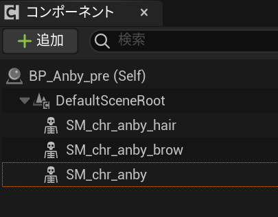 '앞머리 ' , '눈 썹/속눈썹 ', '기타'로 컴포넌트(스켈레탈 메시)를 나눕니다.。