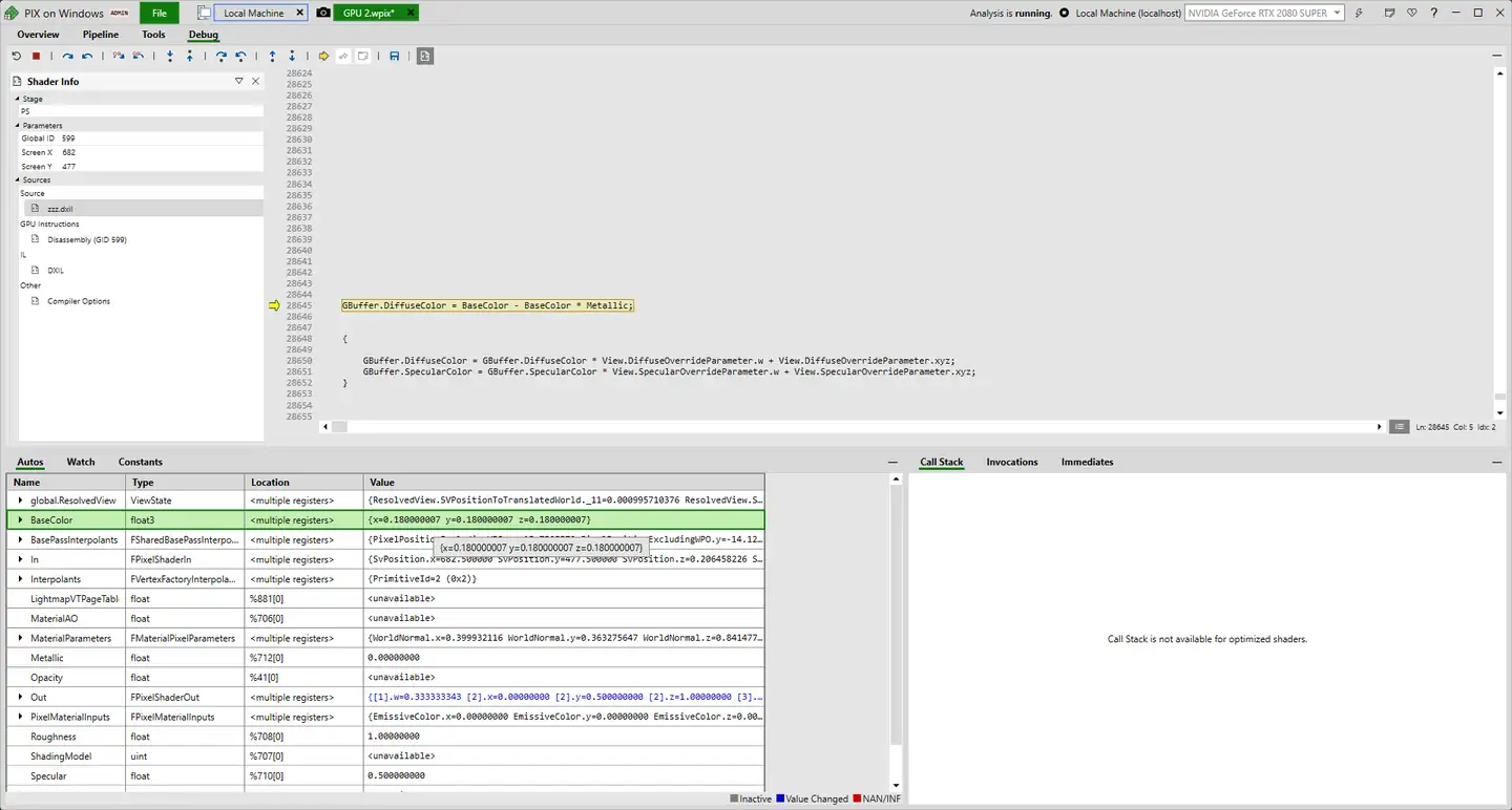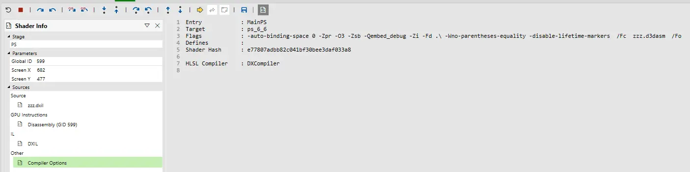 마우스 왼쪽 버튼에서 픽셀 하나를 선택해도 Debug Pixel이 가능하며, 어두운 색 모드는 매우 쿨하지만 Shader 코드가 잘 보이지 않습니다. 여전히 흰색 구식 프로그래머의 테마 색상을 사용합니다: