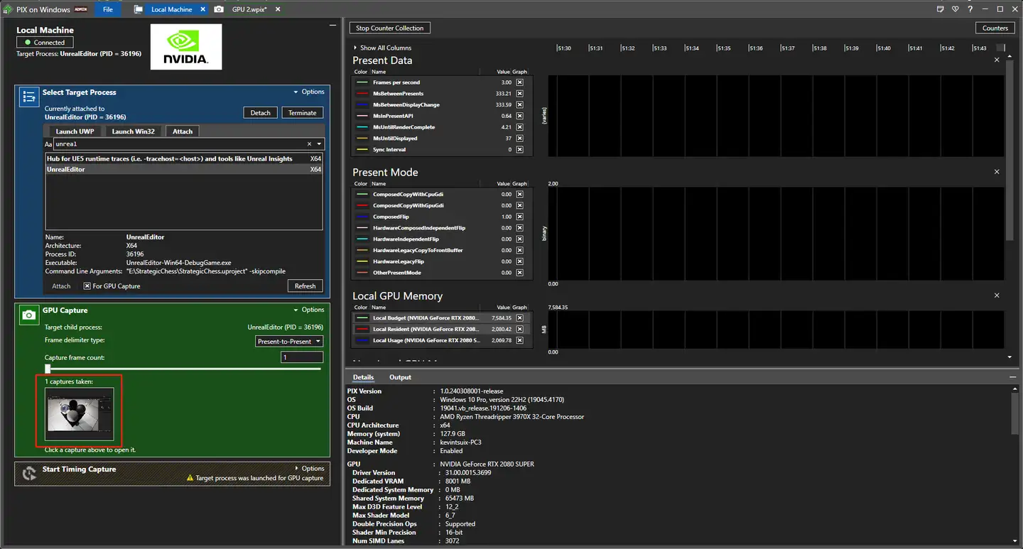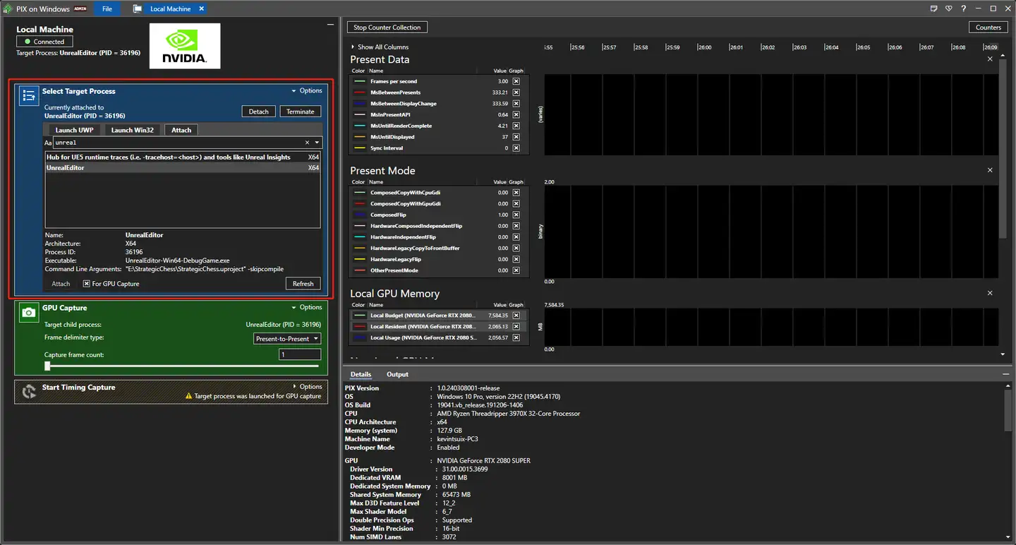 PIX를 열고 언리얼 프로세스를 찾아 PIX에 연결합니다:
