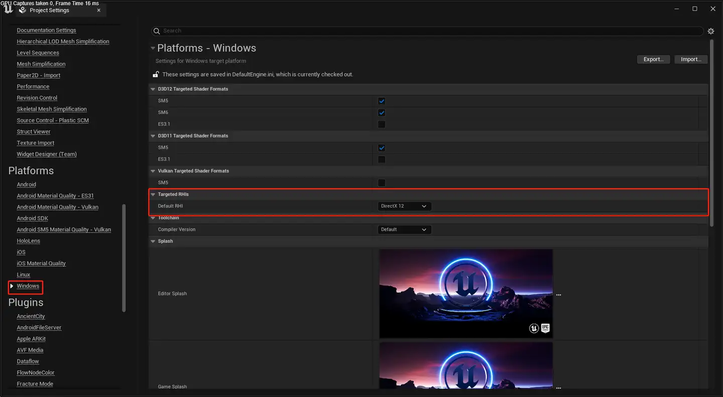엔진의 기본 RHI가 DX12인지 확인하세요: