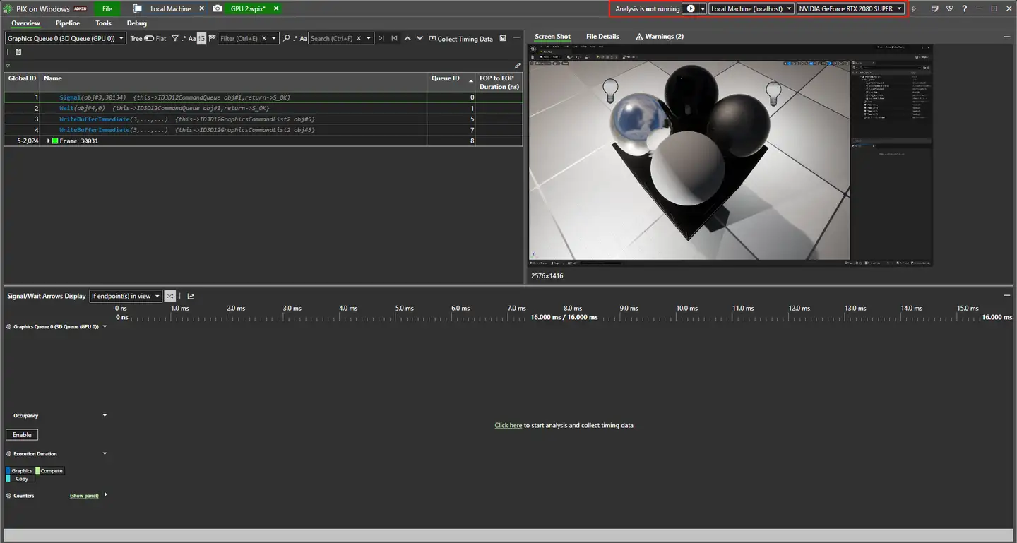 A PIX GPU capture records all the Direct3D 12 API calls made by the game, including their parameter data. These calls can later be replayed, which enables a range of debugging and analysis features. It is not always possible for PIX to successfully take