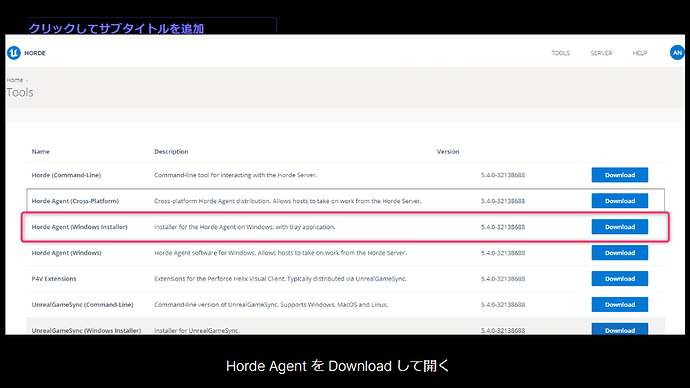 1. HordeAgent 설치 HordeAgent의 설치 프로그램은 HordeServer의 PC에 접속하여 설치 프로그램을 얻습니다. 원격 PC에서 WebBrowser를 열고 http://[HostIp]:13340을 입력(예: http://10.7.101.8:13340 1)합니다. [TOOLS]에서 HordeAgent 설치 프로그램을 다운로드하여 설치한다.