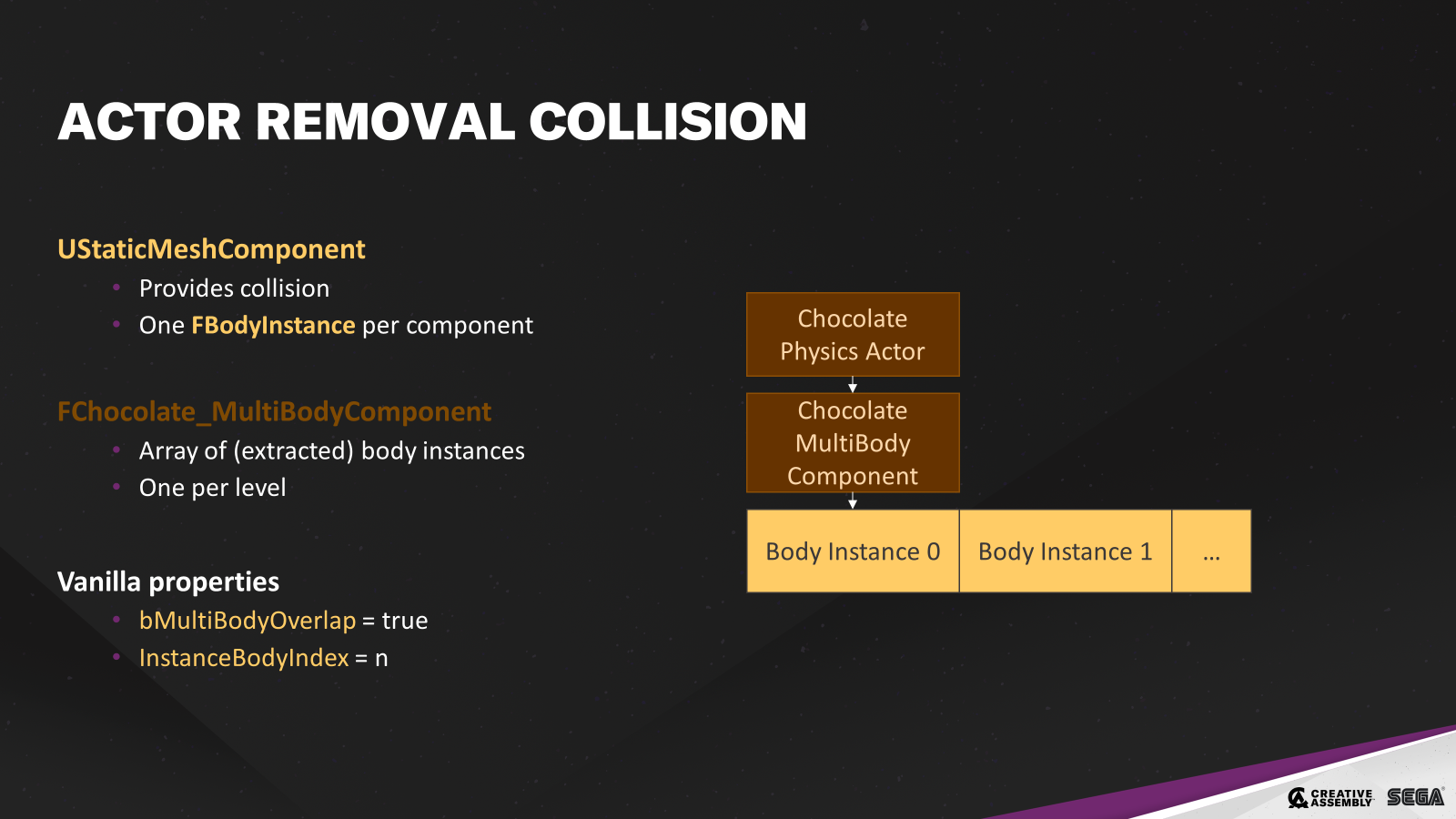 스태틱 메시 컴포넌트도 바디 인스턴스를 통해 콜리전을 제공하므로 이를 대체해야 합니다. 레벨에서 인스턴스 디스크립터를 추출할 때 바디 인스턴스도 추출합니다. 각 컴포넌트마다 하나씩 있습니다. 그런 다음 각 레벨에 새로운 멀티 바디 콜리전 액터를 삽입합니다. 그러면 해당 레벨의 모든 바디 인스턴스가 다시 생성됩니다. 그런 다음 멀티 바디 오버랩 부울을 true로 설정하고 인스턴스 바디 인덱스를 설정하여 콜백에서 이를 식별할 수 있도록 합니다.