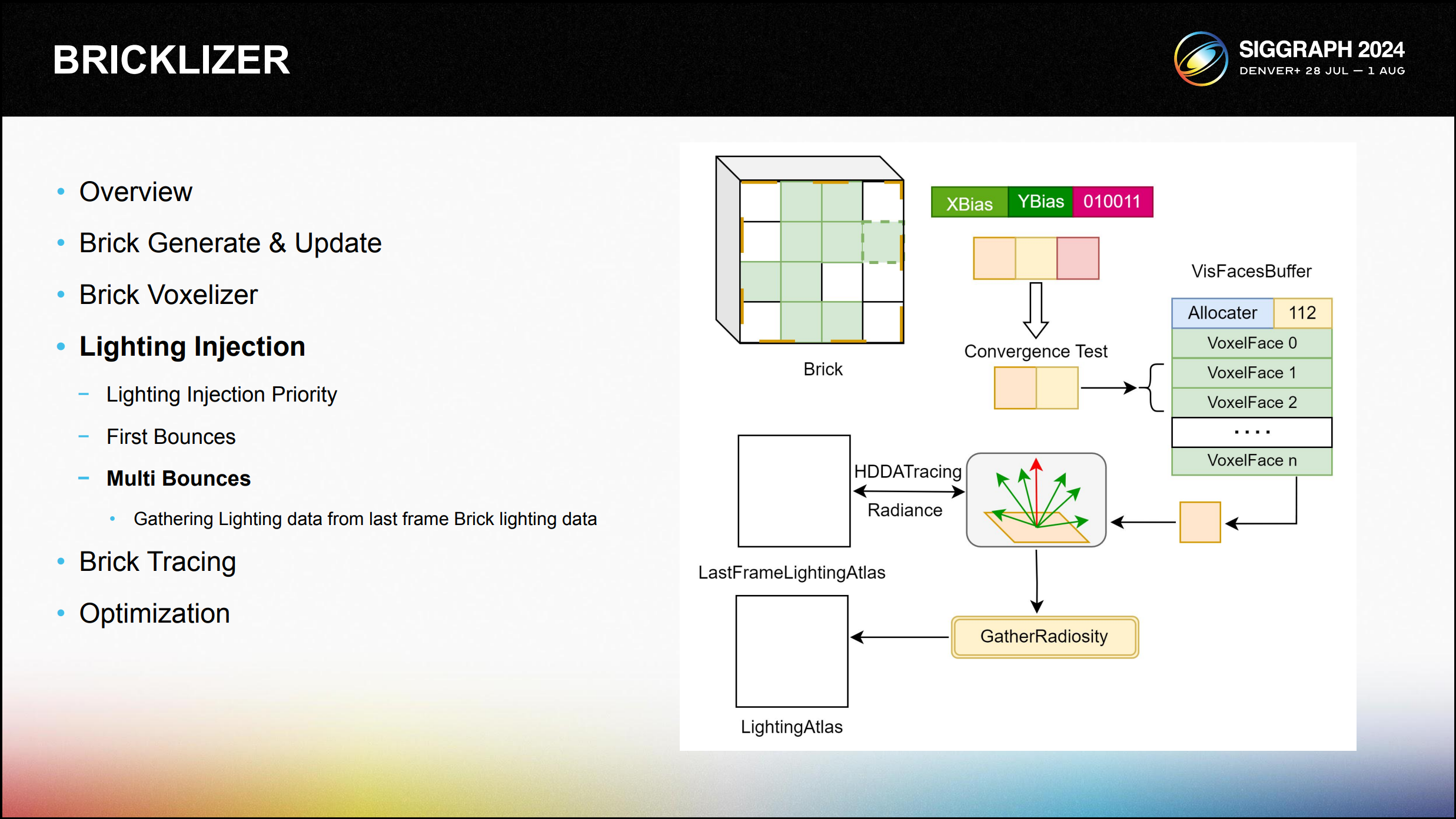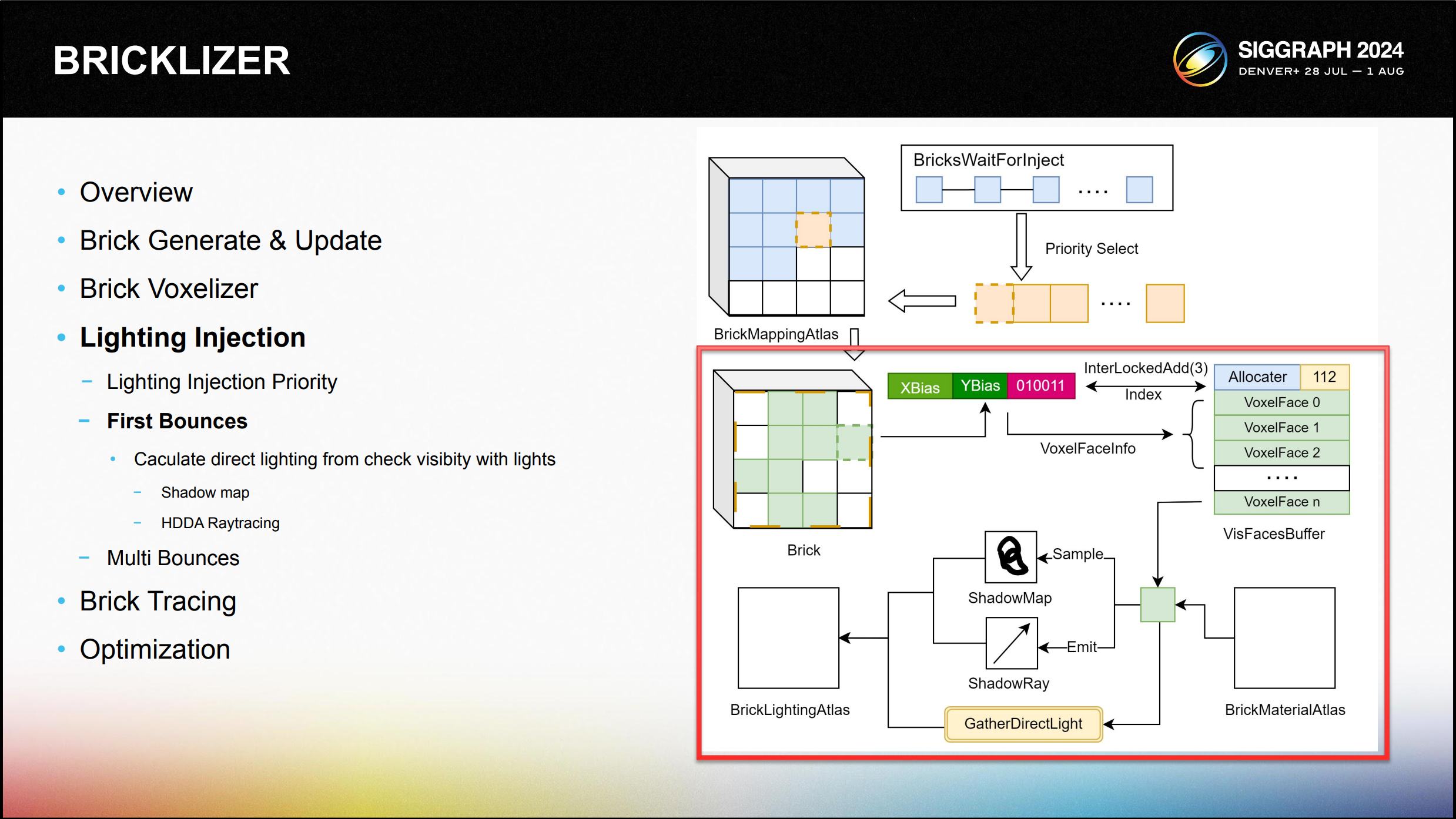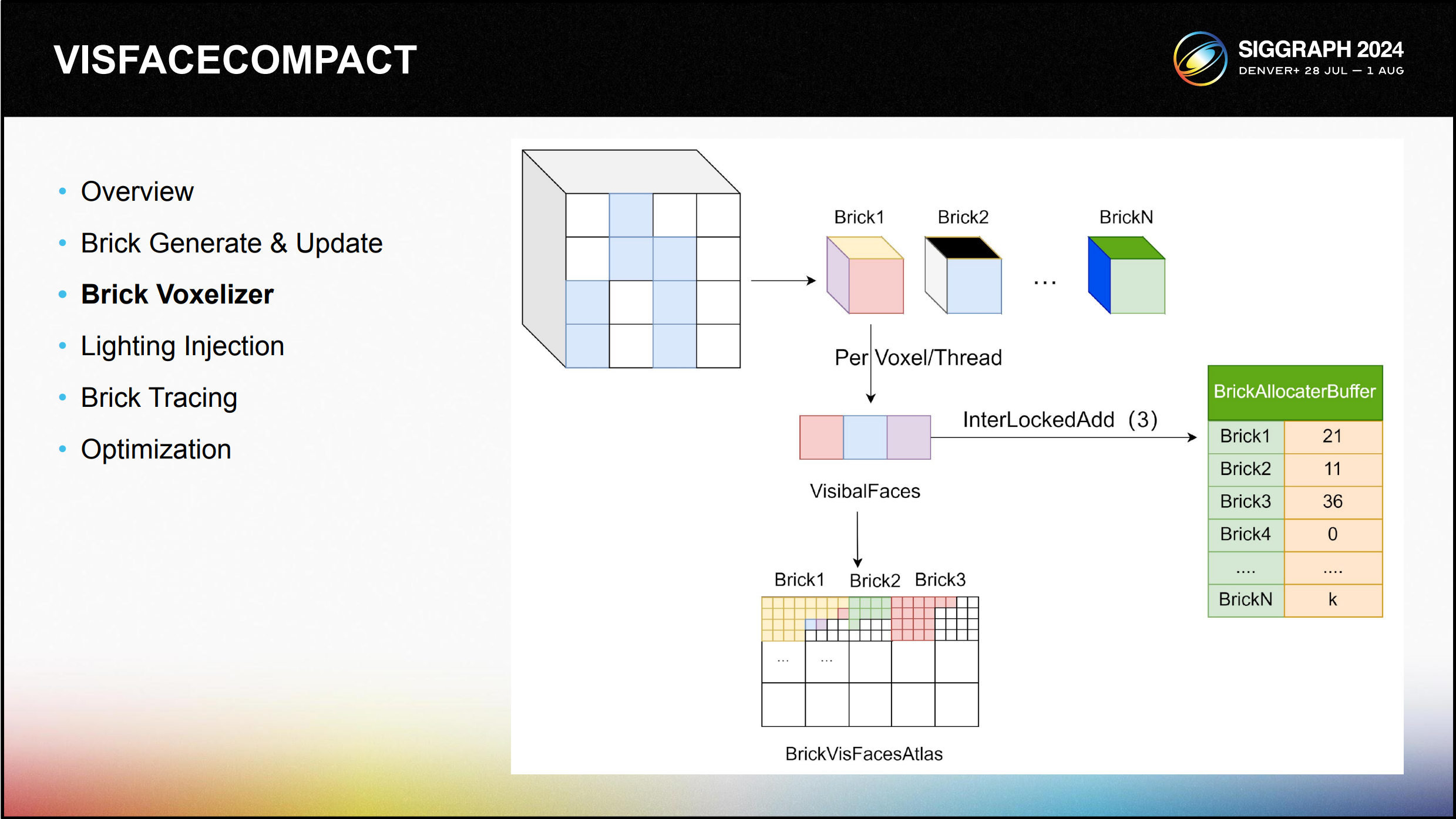 직접 조명 계산에 앞서 하드웨어 활용도를 극대화하기 위해 브릭 내의 모든 유효한 면 을 VisBuffer로 압축합니다.