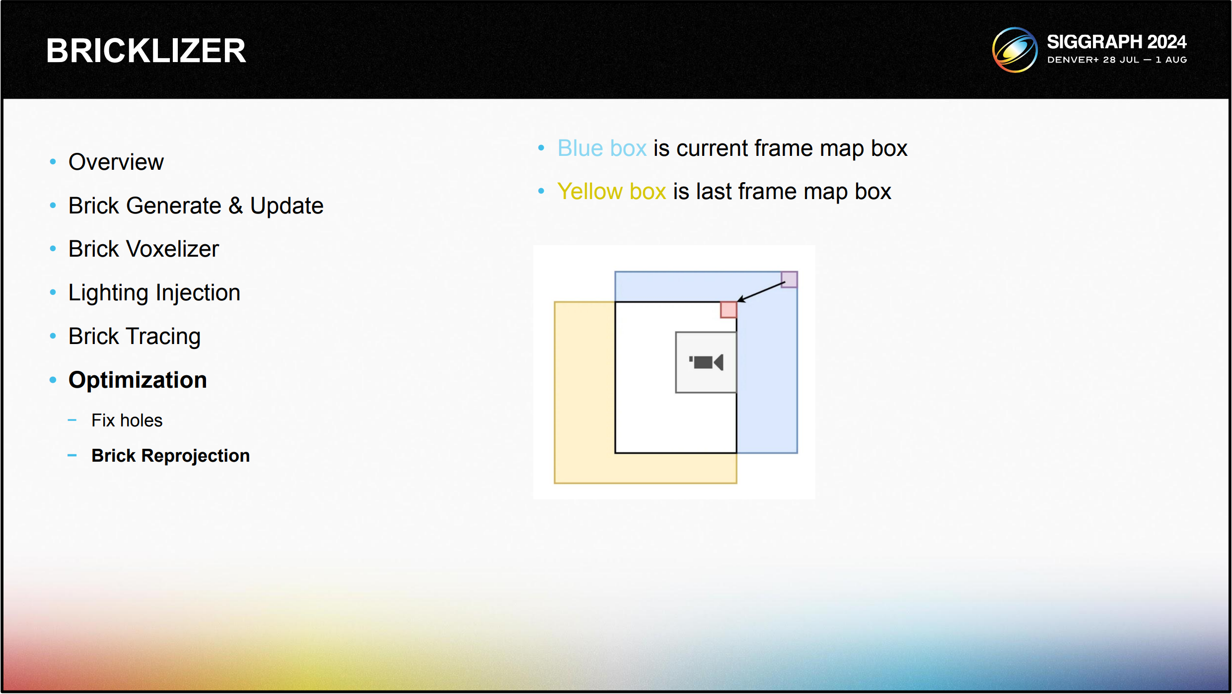 전체 업데이트와 카메라 이동 업데이트는 바운딩박스 를 기반으로 한 업데이트에 기인할 수 있으며, 바운딩박스의 경계가 브릭 경계와 일치 하도록 정규화해야 합니다.