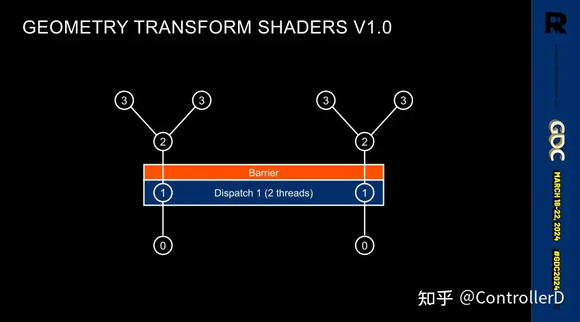 방법 1: 한 번에 한 레이어씩, 각 레이어는 다음 레이어가 이전 레이어의 종속성 결과를 올바르게 읽을 수 있도록 배리어로 끝나는데, 레이어 수가 많을 수 있으므로(최대 64레벨까지 가능) 많은 배리어와 디스패치가 발생하여 속도가 느려질 수 있습니다.