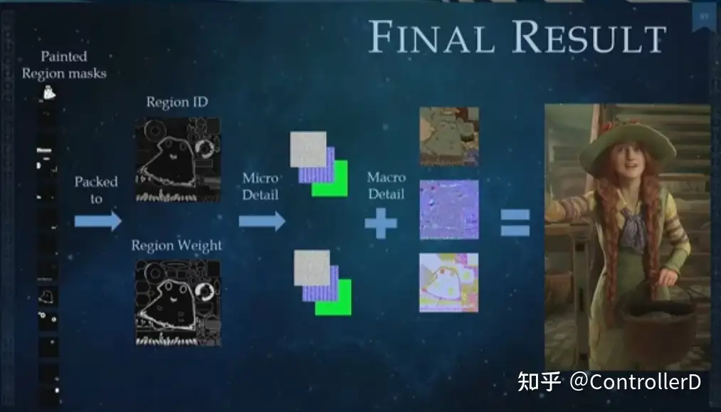 우선 마이크로와 매크로 디테일을 구별하기 위해 옷 주름은 매크로 디테일이며, 이것과 다층 재료는 아무 관련이 없으며, 마이크로 디테일 재료는 실제로 각 재료가 초기 핸드 헬드 지형 블렌드와 유사하게 (다른베이스 / 일반 / 메탈릭 러프니스 맵) 2 개의 재료 색인과 메탈릭 러프니스 맵, 저장 2 개의 재료 색인과 초기 휴대용 지형 혼합을 절약 할 수 있습니다.