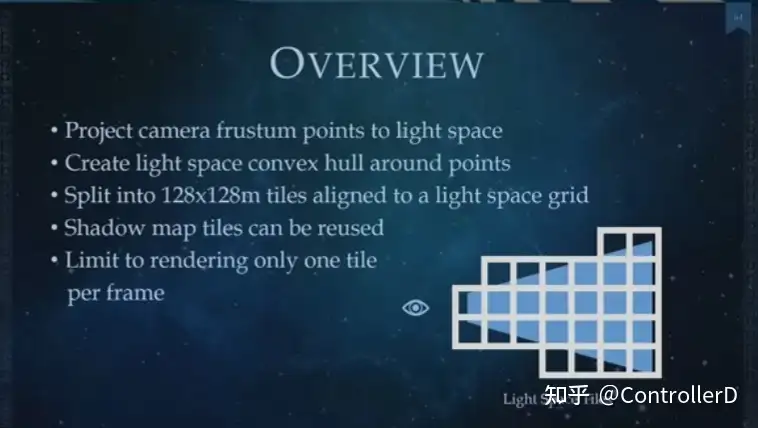 이 아이디어는 카메라가 움직일 때 시야에 들어오는 부분의 그림자만 업데이트하면 되는 스크롤된 그림자 캐시와 비슷합니다.
