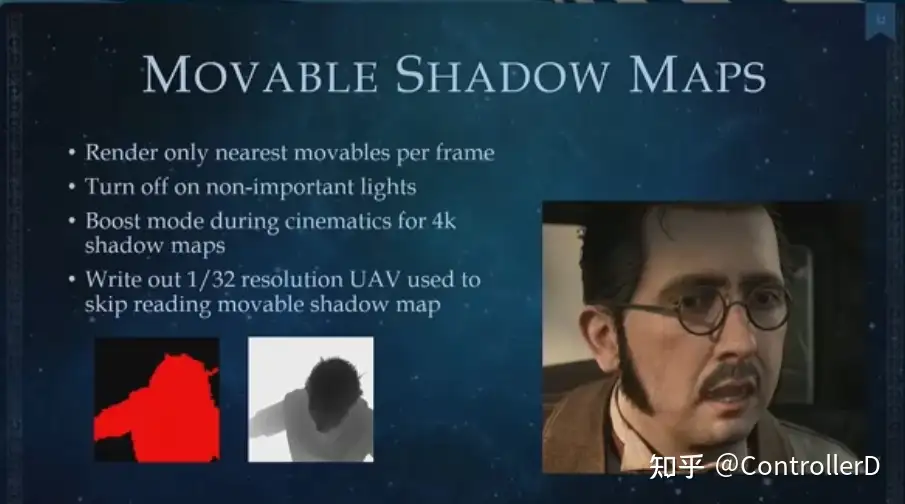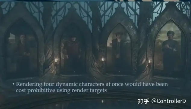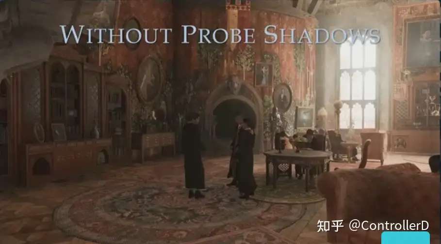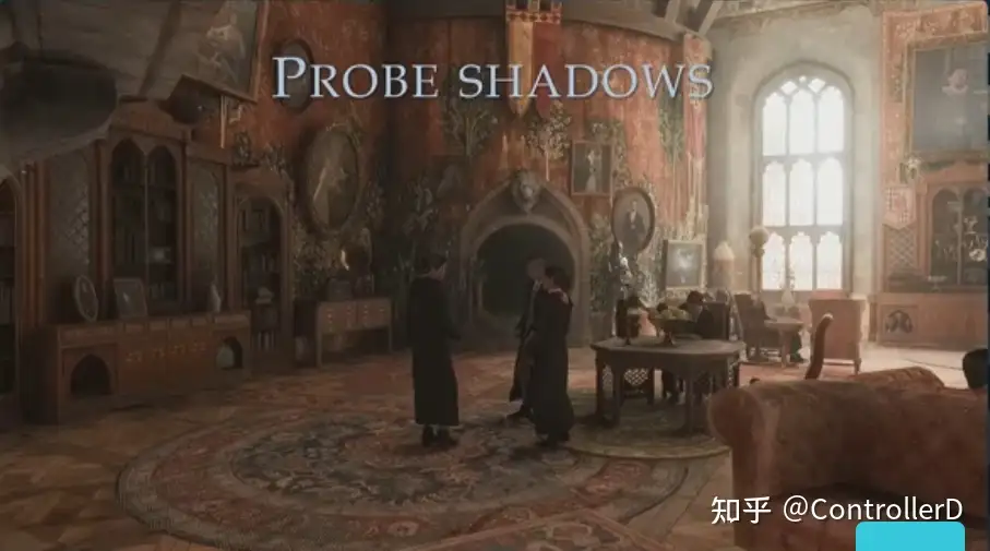 Lumos shadow (지팡이 끝 포인트 라이트)는 사실 포인트 라이트 그림자가 캐시할 수 없는(움직이는 사람을 따라가기 때문에) 문제가 있습니다. 최적화는 큐브맵을 사용하여 한 번에 6 개의 그림자를 그리는 것 외에도 캐릭터의 그림자에만 로우 프로파일 (스위치)이 있습니다.