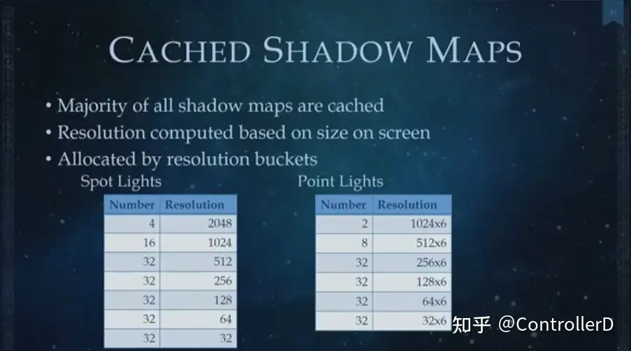 동적 그림자와 정적 그림자뿐만 아니라 접촉 그림자(Contact Shadow)와 캡슐 그림자도 있습니다. 많은 빛에는 정적 그림자가 있지만 소량의 빛만 동적 그림자를 드리우며, 동적 그림자가 없는 빛을 선택하여 캐릭터에 캡슐 그림자를 줄 수 있습니다. 그림자 맵 캐시에도 크기 버킷이 있습니다.