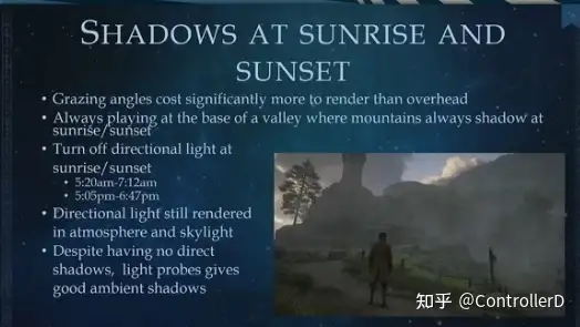 햇빛이 땅과 거의 평행할 때 일출과 일몰과 같은 경우 드로우콜은 매우 높아집니다. 평행한 조명을 직접 끄십시오...