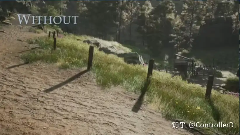 접촉 그림자(Contact Shadow)는 매우 효과적이므로 가까운 거리에 있는 작은 물체나 풀과 같은 번거로운 사물을 그리는 것을 건너뛰고 먼 거리에 그림자를 만들 수 있습니다.