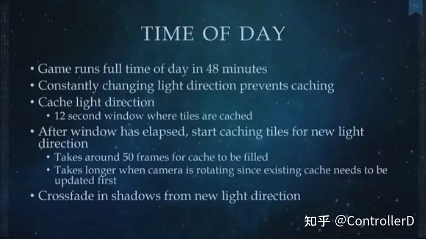 시간, 크로스 페이드가 필요하므로 실제로 각 프레임은 기본적으로 사용되는 메모리 양의 2 배, 마지막 햇빛 각도와 현재 각도는 크로스 페이드가 필요합니다.