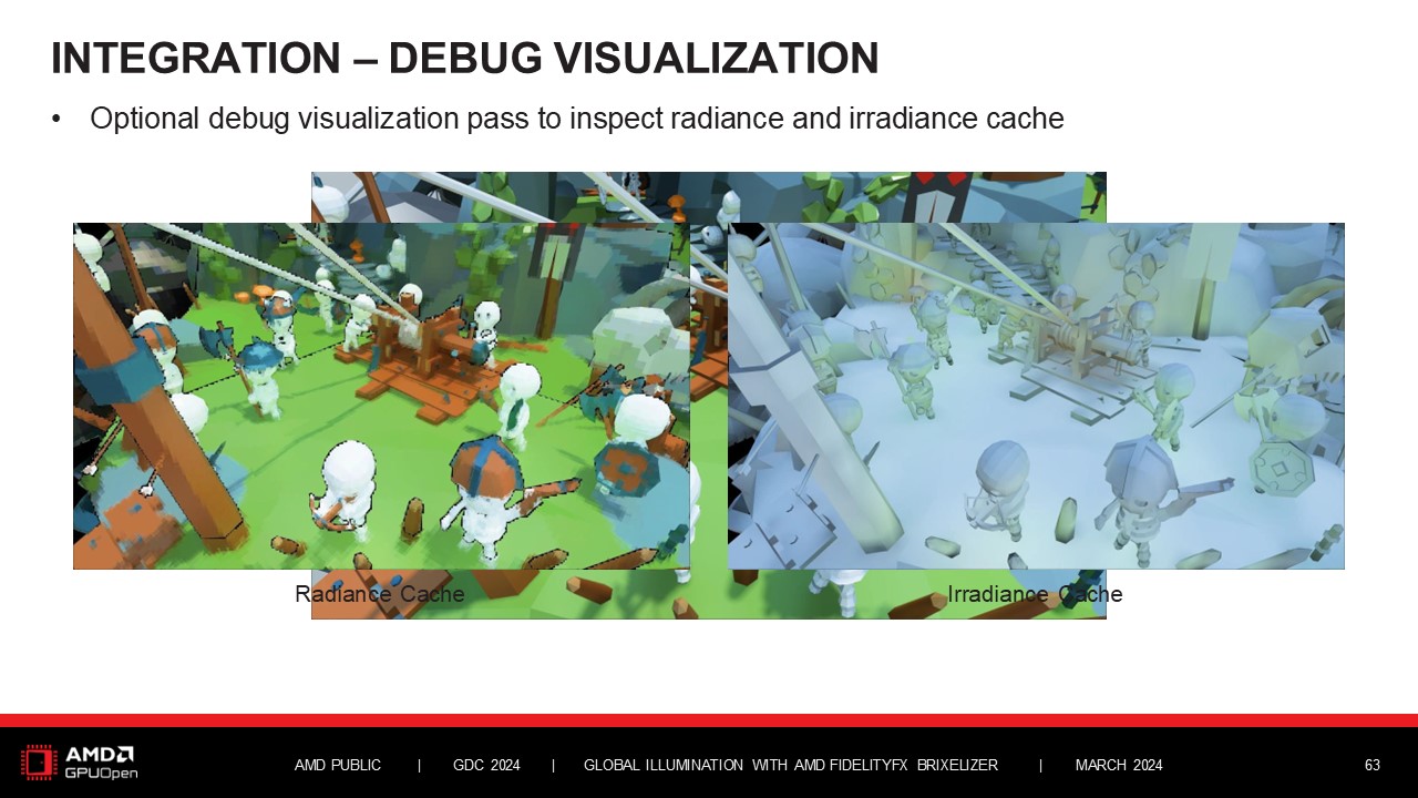 이번 릴리스에서 가장 크게 추가된 두 가지 기능은 Brixelizer 및 Brixelizer GI 라이브러리입니다. 또한 사용법을 보여주는 DirectX 12 및 벌칸 샘플이 함께 제공됩니다. 또한 정적 및 동적 장면 요소를 처리하는 방법과 다양한 디버그 뷰 및 디버그 카운터를 사용하여 이를 애플리케이션에 통합하는 방법도 보여 줍니다.