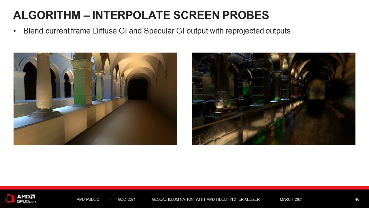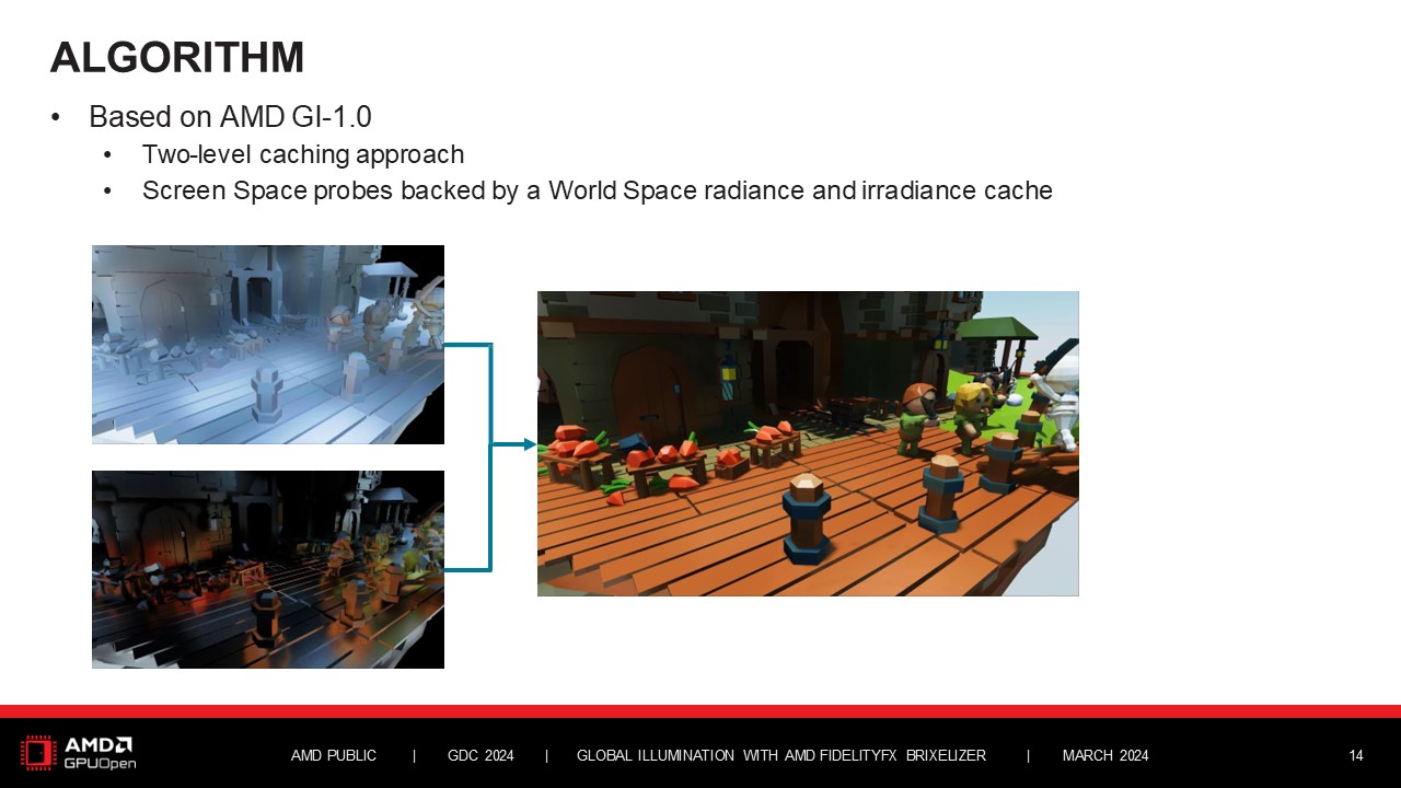 이는 다음 FidelityFX SDK 릴리스의 일부로 제공될 예정이며 Brixelizer를 보완하는 라이브러리로 제공될 것입니다. 그리고 모든 C++ 및 셰이더 소스는 언제나처럼 MIT 라이선스에 따라 제공됩니다. Brixelizer GI의 높은 수준의 아이디어는 애플리케이션의 G 버퍼뿐만 아니라 Brixelizer의 출력 리소스를 가져와 최종 셰이딩 출력에 합성할 수 있는 확산 및 스페큘러 GI 출력을 제공한다는 점입니다.