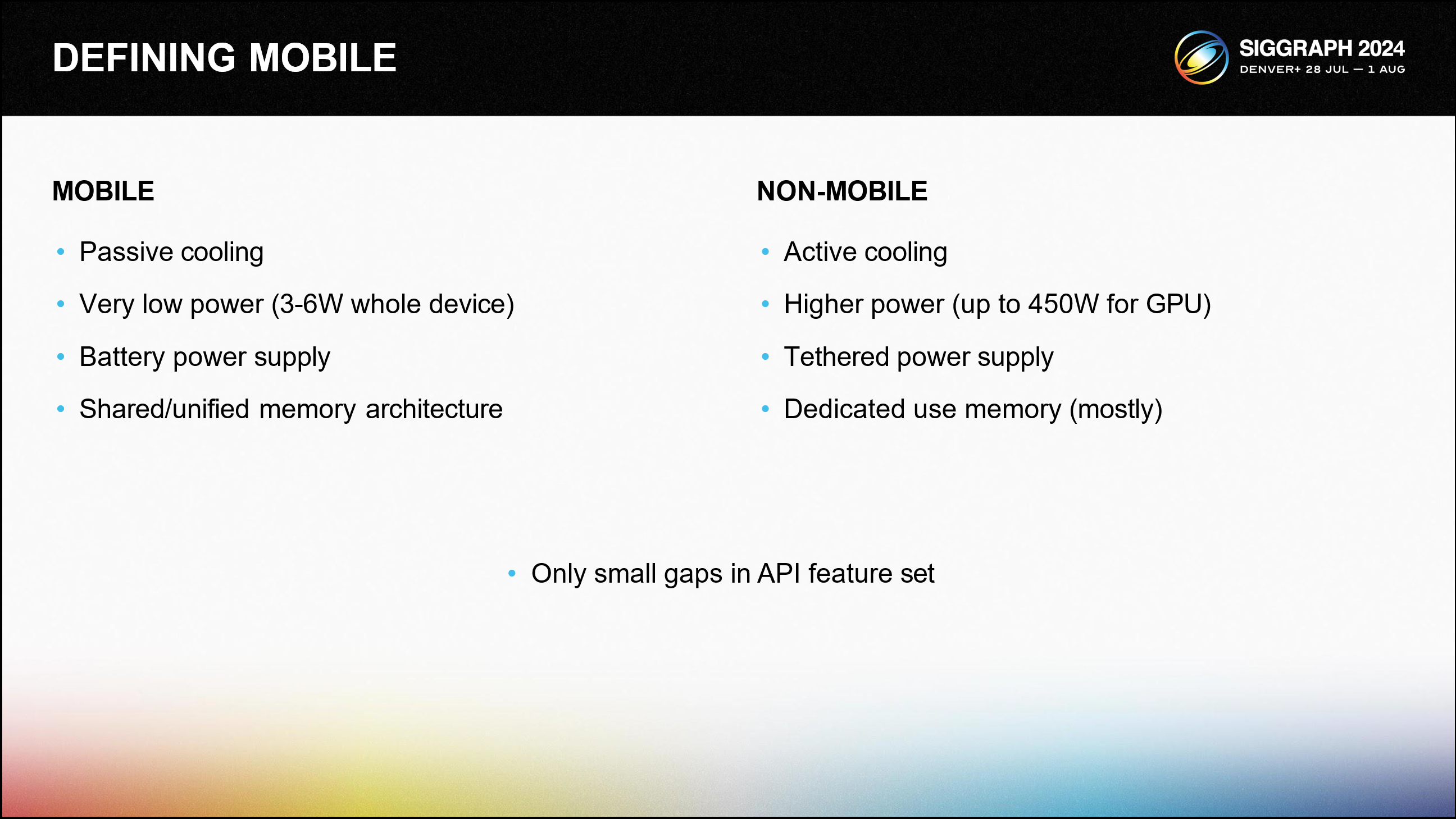 그렇다면 “모바일 GPU”란 무엇을 의미할까요? “휴대폰과 같은” 것을 말합니다. 이러한 장치는 일반적으로 수동적으로 냉각되고 배터리로 구동되며 열적으로 제약이 있는 장치입니다.