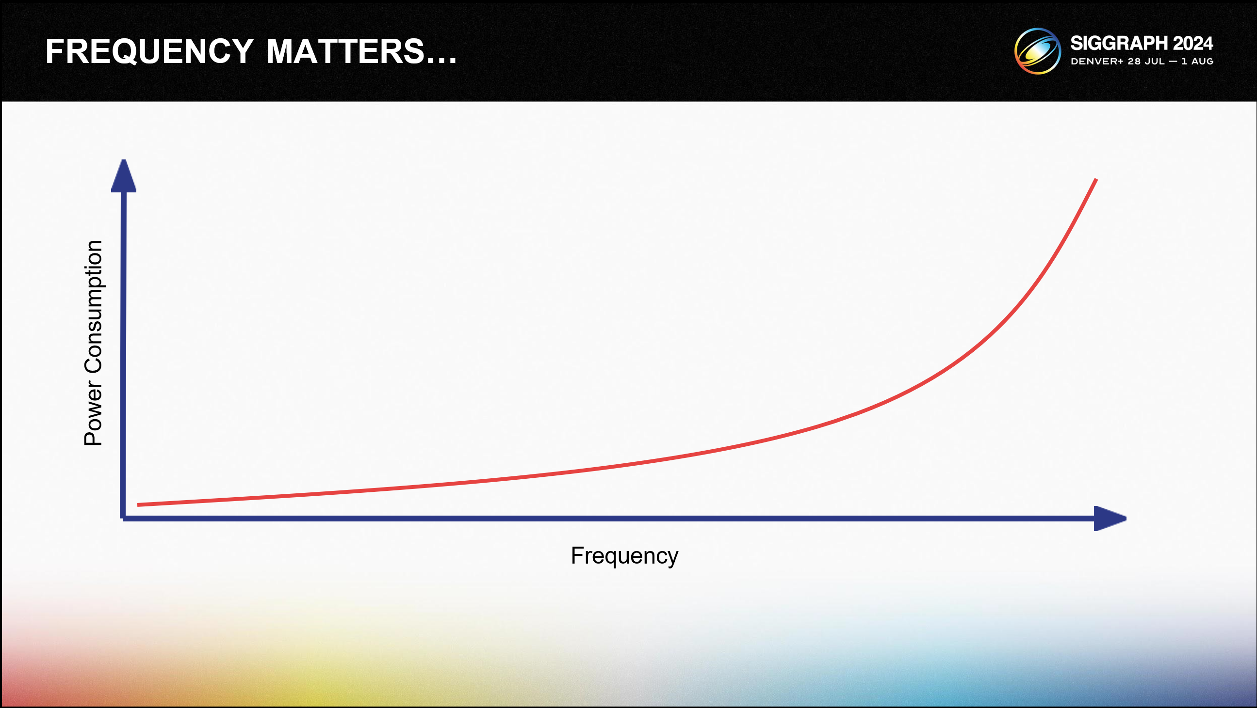 이전 슬라이드에서 열 관리를 위해 적극적으로 주파수를 조절할 것이라고 말씀드렸습니다. 주파수를 높이려면 전압을 높여야 하고, 이는 주파수가 증가함에 따라 전력 소비가 4배로 증가하는 것을 의미합니다. 전력 소비는 발열량과 매핑되므로 주파수를 낮추면 발열량이 크게 감소합니다.