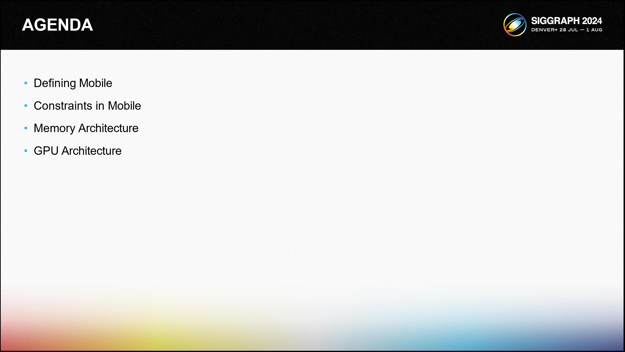 이 강연에서는 모바일 GPU의 아키텍처 기본 사항과 기존 데스크톱 부품과의 차이점에 대해 이야기할 것입니다.