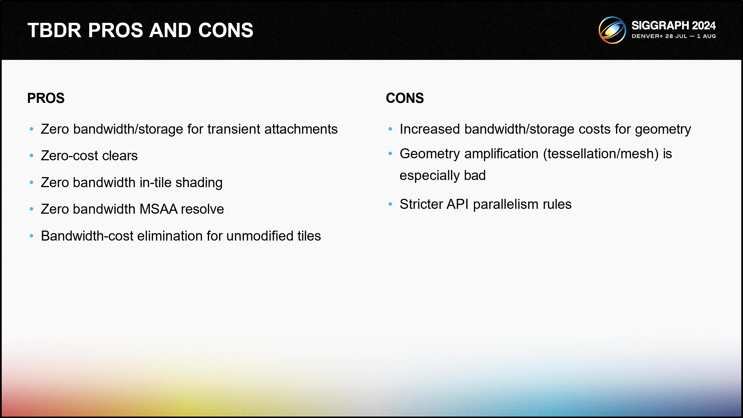 또한 지오메트리 비닝을 먼저 수행해야 하기 때문에 프레임 지연 시간이 더 길어질 수 있습니다.