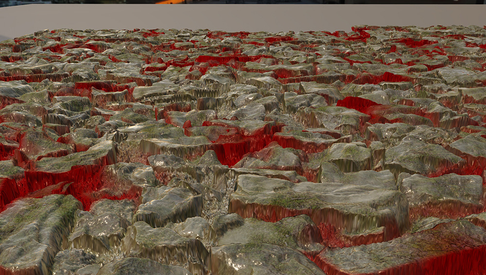 마지막으로 삼각형 수가 많은 세 번째 스크린샷을 찍어 보겠습니다. 각 모델은 500x500이며, 삼각형당 1픽셀에 가깝습니다. 다음은 바위를 클로즈업한 사진입니다.